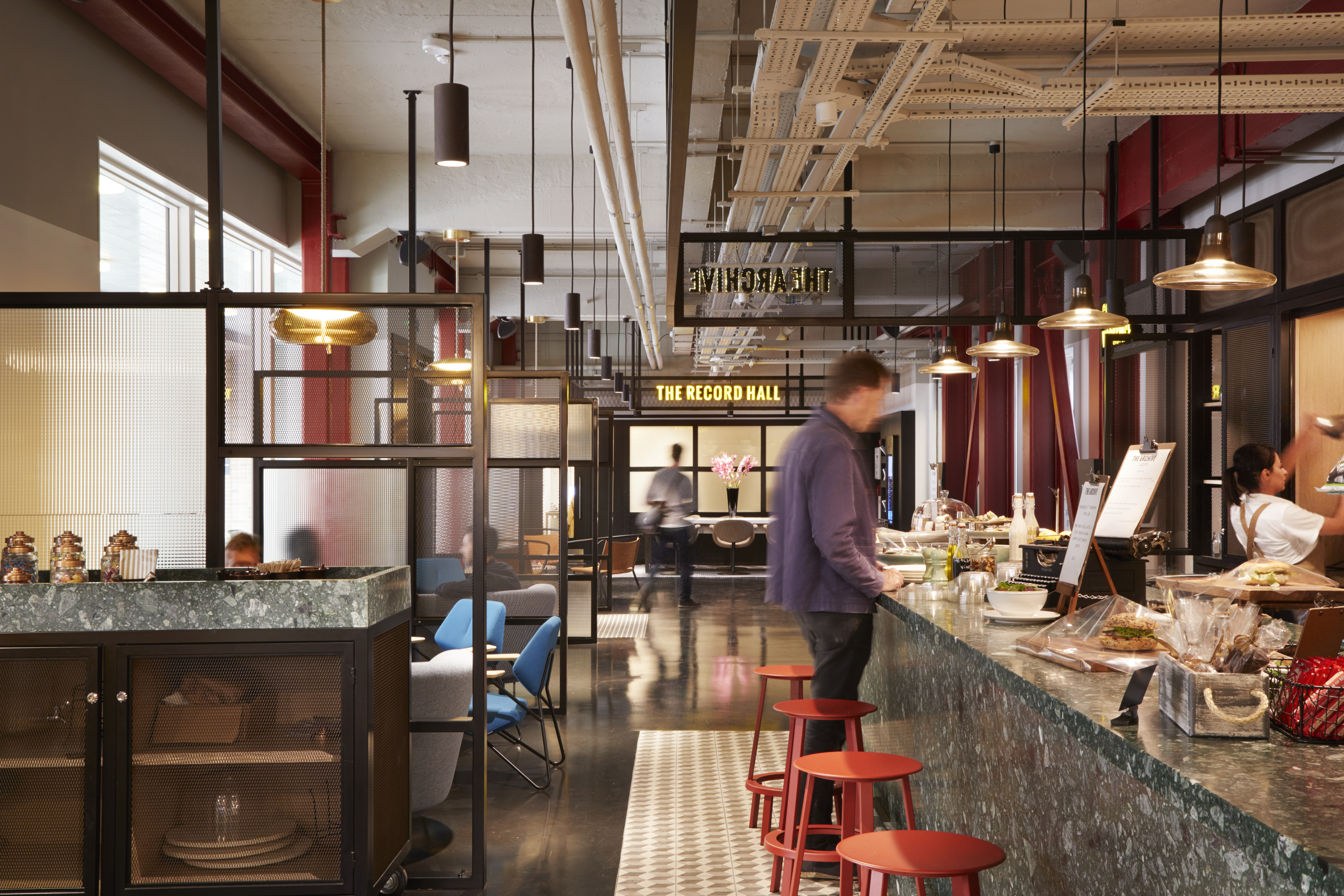 Workspace transformed a former record depository to create 5,400m2 of modern office and studio space over six floors, with high-tech meeting rooms, a café and roof terraces offering views across the City. Located in the Hatton Garden Conservation Area, 14% of the scheme is designated for jewellery businesses, reflecting the area’s heritage as London's jewellery district. The Record Hall achieved BREEAM Excellent Design Stage, scoring particularly highly for transport, land use and ecology. The project team is now working towards Excellent for the Post Construction Stage (final).